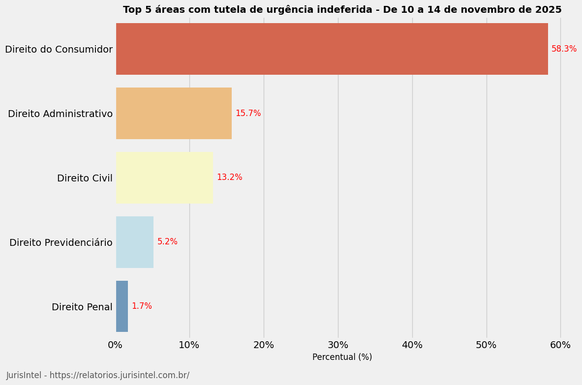 Análise das decisões que indeferiram pedidos de tutela de urgência no período de 10 a 14 de novembro de 2025.